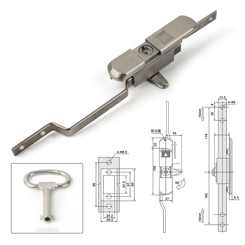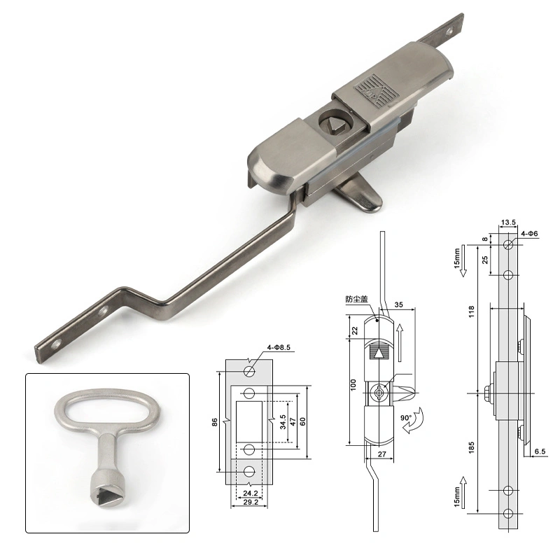 या लॉकचे कार्य उभ्या रॉड यंत्रणेद्वारे कॅबिनेटचे दरवाजे सुरक्षित करणे आहे, इलेक्ट्रिकल कॅबिनेट किंवा सर्व्हर रॅकसाठी सर्वसमावेशक संरक्षण प्रदान करते. उत्पादनाची रचना रिटल कॅबिनेट आणि मानक कॅबिनेट बॉडीजशी सुसंगत आहे आणि स्थापनेचा दरवाजाच्या संरचनेवर परिणाम होत नाही. लॉक बॉडीमध्ये सरलीकृत देखभालसाठी धूळ कव्हर आहे.