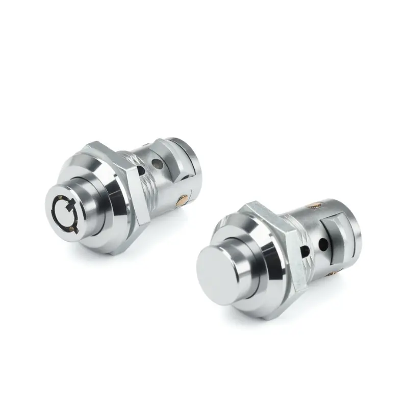 पुश-बटण मॉडेल बटण दाबल्यावर आपोआप अनलॉक होते आणि दार बंद केल्यावर लॉक होते, मूलभूत सुरक्षा संरक्षण प्रदान करते. पिन टम्बलर लॉक मॉडेल पिन यंत्रणा वापरते जे केवळ जुळणाऱ्या कीसह फिरण्यास अनुमती देते, चोरीविरोधी कार्यक्षमता प्रदान करते. दोन्ही मॉडेल्स विशिष्ट पातळीची जलरोधक शक्ती प्रदान करण्यासाठी झिंक मिश्र धातुचा वापर करतात, आणि अतिरिक्त प्रॅक्टिक गॅससाठी अतिरिक्त शक्ती प्रदान करतात. व्हेंडिंग मशिन्स झिंक अलॉय सिलेंडर लॉकमध्ये गंज प्रतिकार करण्यासाठी चमकदार क्रोम फिनिश आहे. स्थापित दरवाजा पॅनेलची जास्तीत जास्त जाडी 10 मिमी आहे. (स्टेनलेस स्टील सामग्रीसाठी, कृपया आमच्याशी संपर्क साधा. आम्ही सध्या मोल्ड तयार करत आहोत.)
