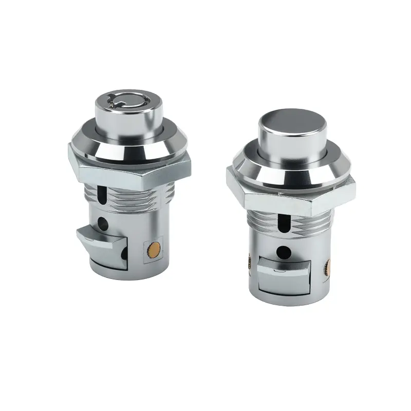 पुश-बटण ऑपरेशनसह व्हेंडिंग मशीन झिंक अलॉय सिलेंडर लॉकमध्ये सरळ ऑपरेशनसाठी चावीविरहित डिझाइन वैशिष्ट्यीकृत आहे, ज्यामुळे ते विशेषत: द्रुत प्रवेश आवश्यक असलेल्या परिस्थितींसाठी योग्य बनते. पिन टम्बलर लॉक मॉडेल वर्धित सुरक्षा प्रदान करते. दोन्ही मॉडेल्समध्ये एकसारखे माउंटिंग आयाम आहेत, त्यामुळे ग्राहक त्यांच्या गरजांशी जुळणारे मॉडेल निवडू शकतात.