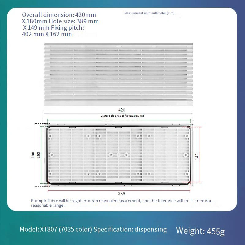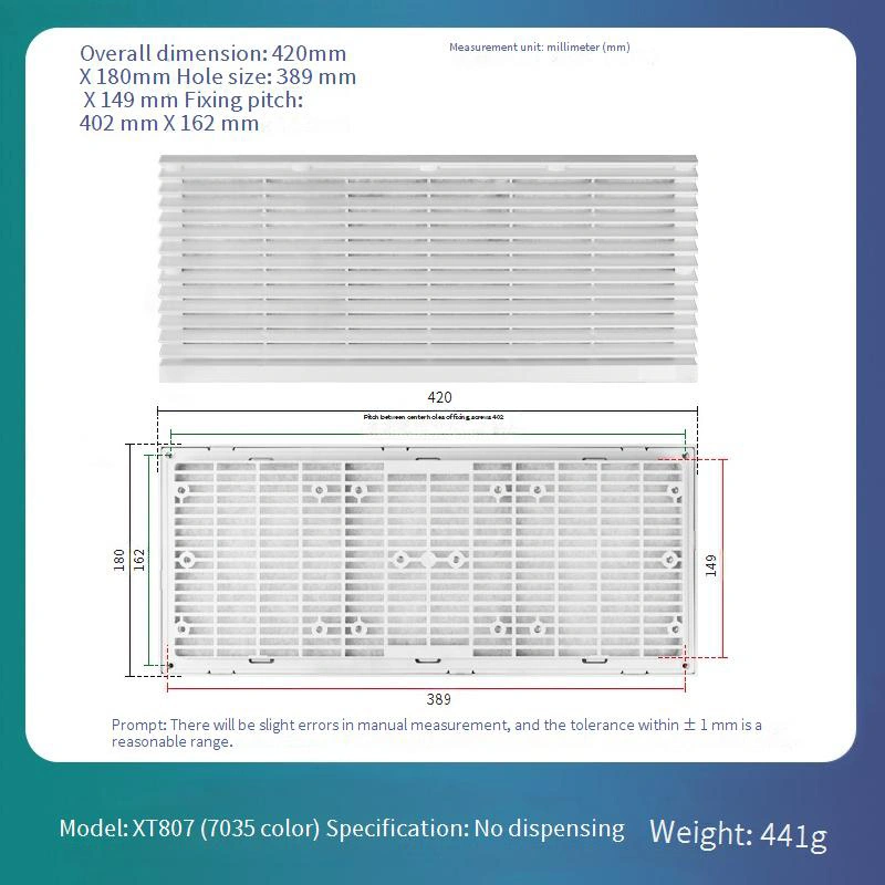 सुलभ दैनंदिन देखभाल आणि बदलीसाठी बदलण्यायोग्य फिल्टर जाळीची रचना वैशिष्ट्ये, दीर्घकालीन ऑपरेटिंग खर्च लक्षणीय प्रमाणात कमी करतात. फ्रेम स्ट्रक्चर मानक पांढर्या-राखाडी 7035 रंगात उपलब्ध आहे. हे एबीएस सामग्रीपासून तयार केले गेले आहे जे दीर्घकालीन स्थिरता सुनिश्चित करते, उत्कृष्ट विकृतीकरण प्रतिकार देते.